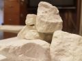 FRS Co. offers Super white bentonite (Natural lumps) for ceramic and paper industries where it is used as a plasticizer in ceramic bodies and as a suspending agent in glazes. Our White bentonite possesses high water-of-plasticity and excellent swelling, dry MOR, Fired MOR, with L value min 75 in color-tests. The other important note is that our bentonite moisture is max 12% which is too affordable for clients to get benefit from this subject while ordering. Our main clients are based in India, China, and GCC Zone. The small amount of our super white bentonite will make the dry glaze more durable. If there are trouble with glazes chipping or flaking when being handled, consider adding it, with no doubt on its benefits. Our bentonite comes in white entirely after burning process, even more whiteness and brightness it gives, in comparison with its natural color and its natural brightness. Bentonite is not a very strong colorant but helps the glaze components stay in suspension in the mix. Bentonite is an aid to good glaze suspension, and in our experience, it also keeps the glazes from powdering so much that they come off when the glazed ware is handled.